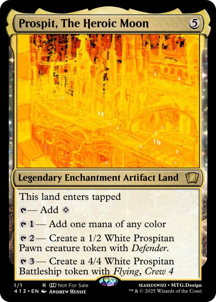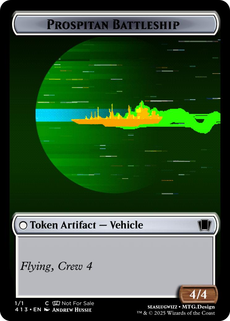 {T}{3}- Create a 4/4 White Prospitan Battleship token with Flying, Crew 4