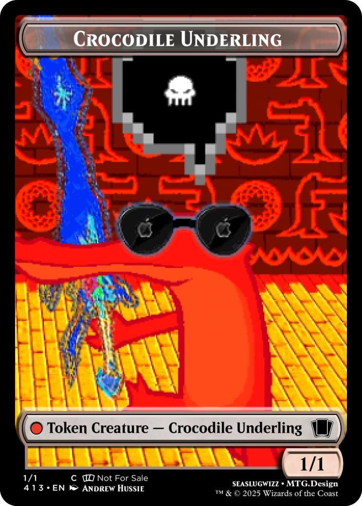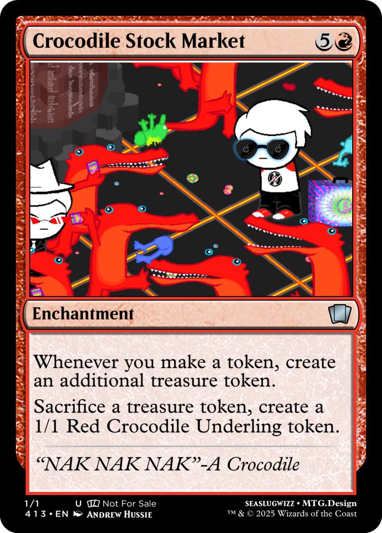Sacrifice a treasure token, create a 1/1 Red Crocodile Underling token.