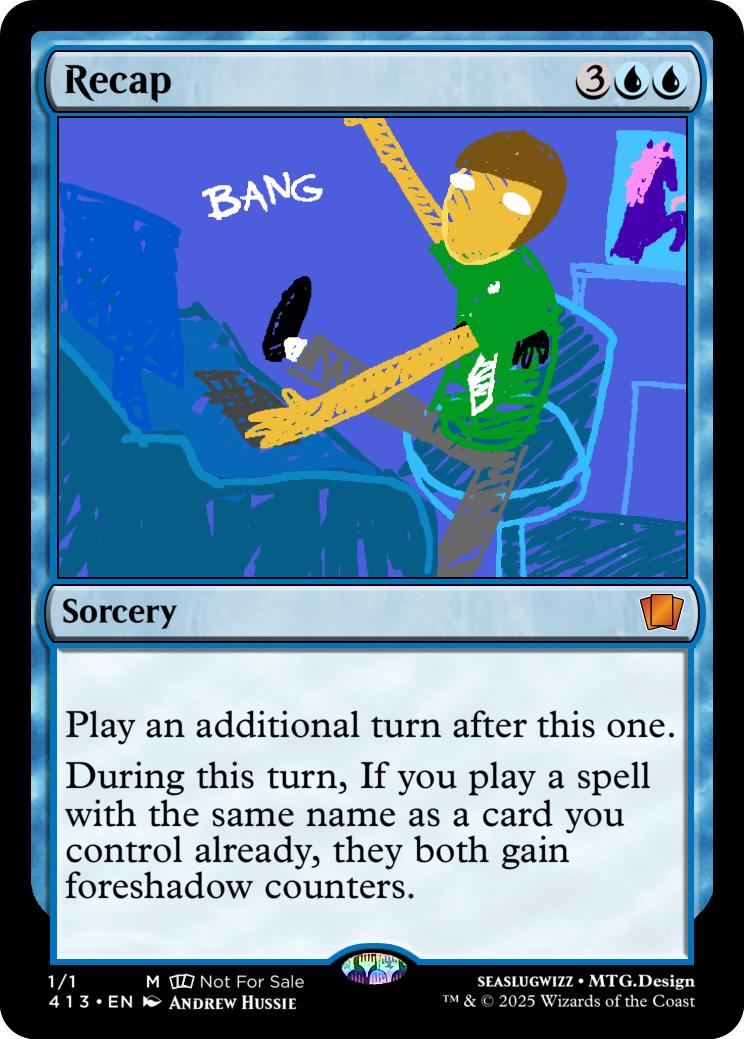 During this turn, If you play a spell with the same name as a card you control already, they both gain foreshadow counters.