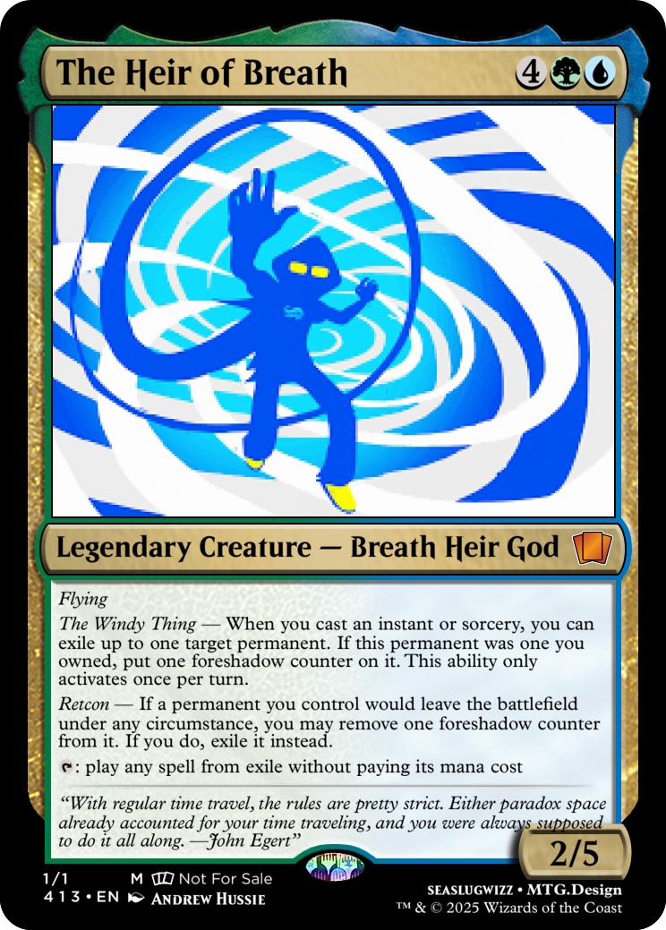 The Windy Thing -- When you cast an instant or sorcery, you can exile up to one target permanent. If this permanent was one you owned, put one foreshadow counter on it. This ability only activates once per turn.