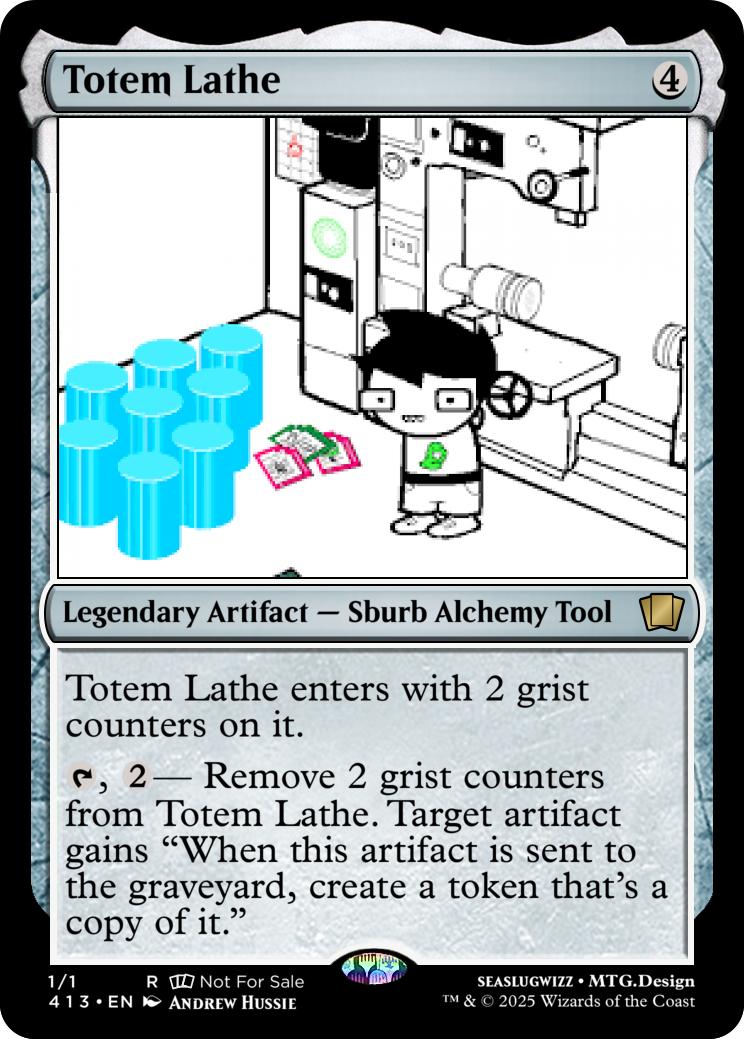 {T}, {2}- Remove 2 grist counters from Totem Lathe. Target artifact gains "When this artifact is sent to the graveyard, create a token that's a copy of it."