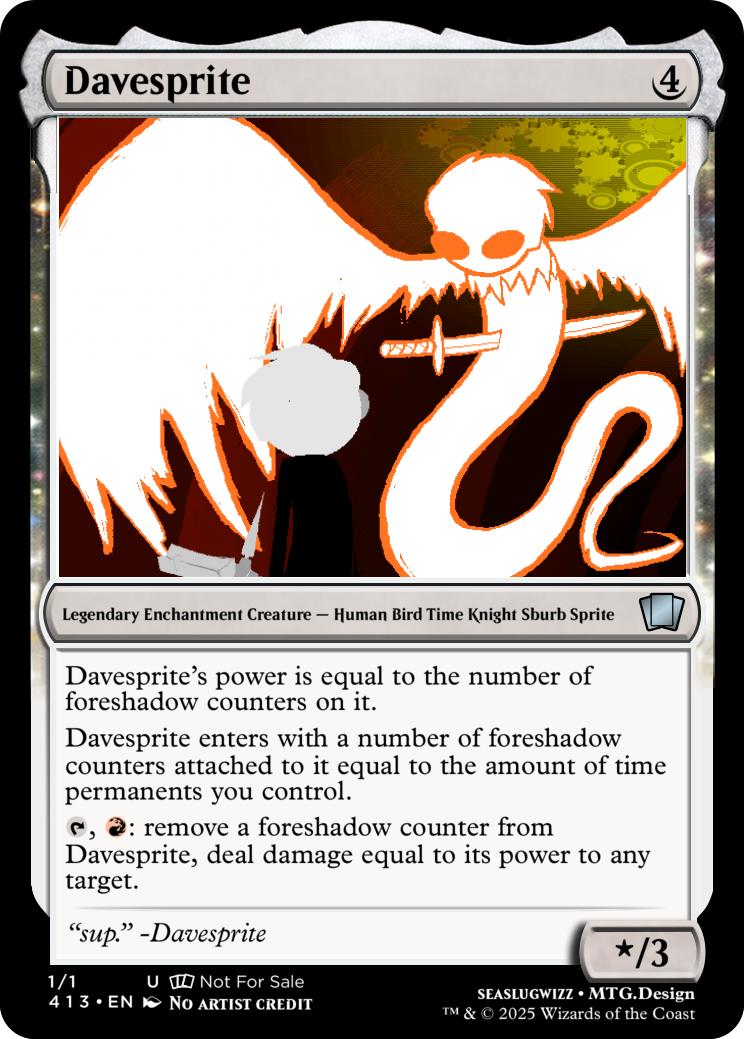 Davesprite enters with a number of foreshadow counters attached to it equal to the amount of time permanents you control.