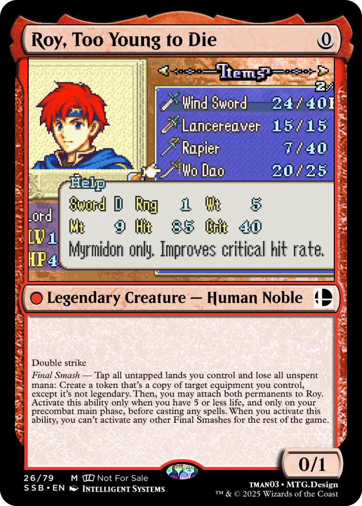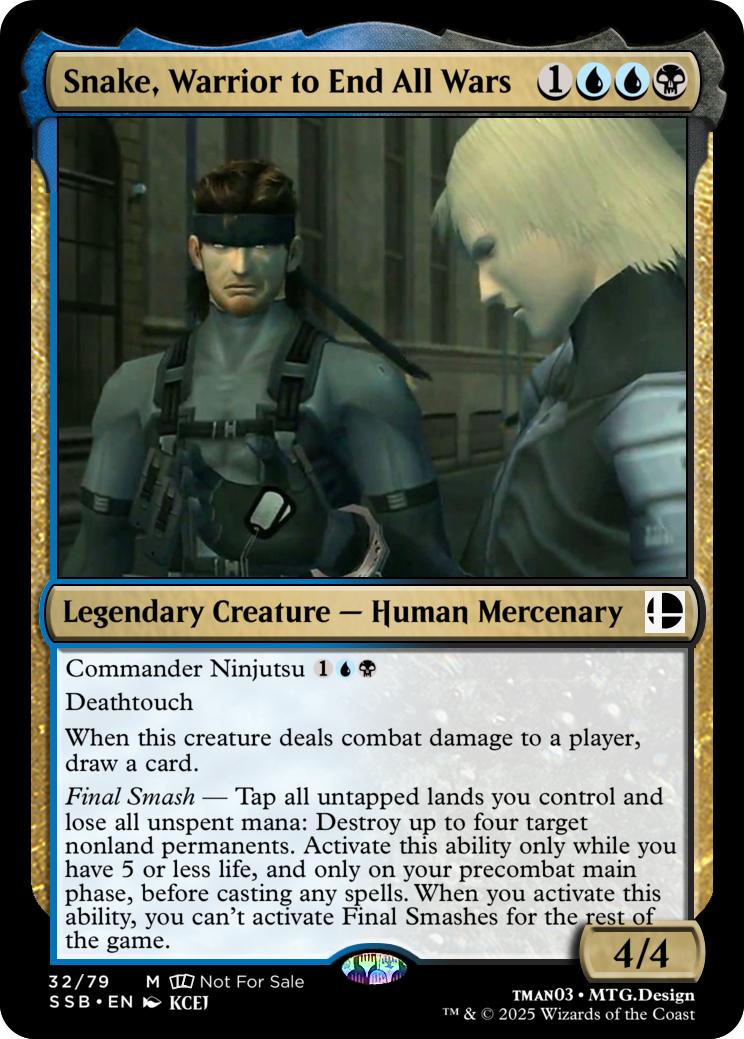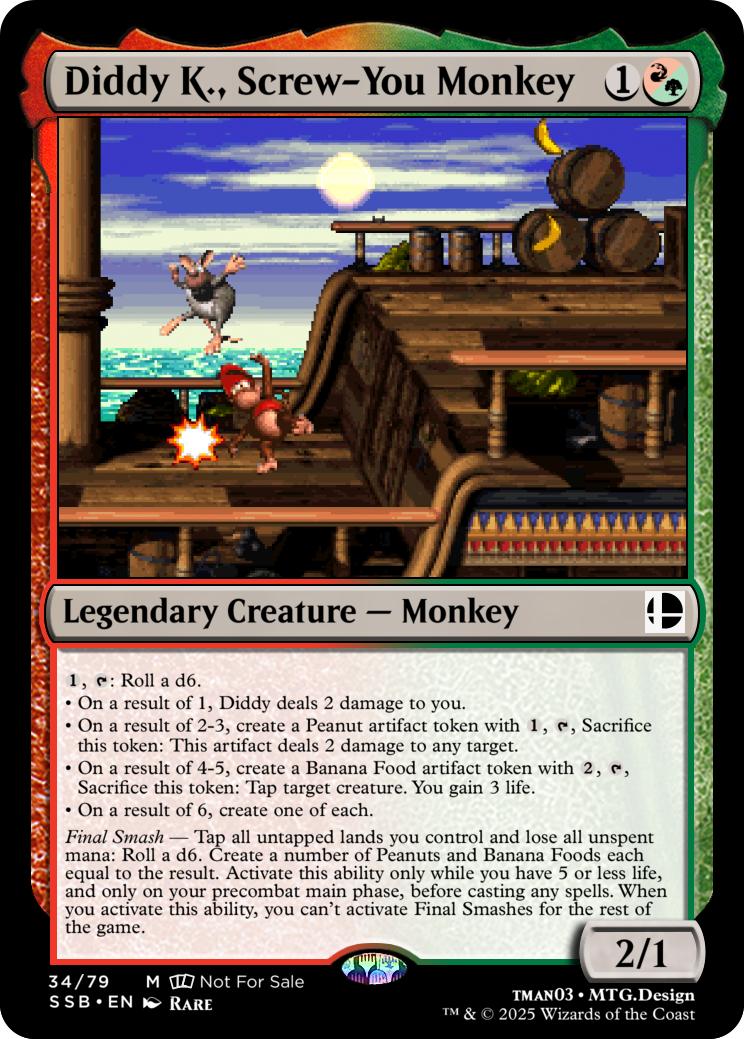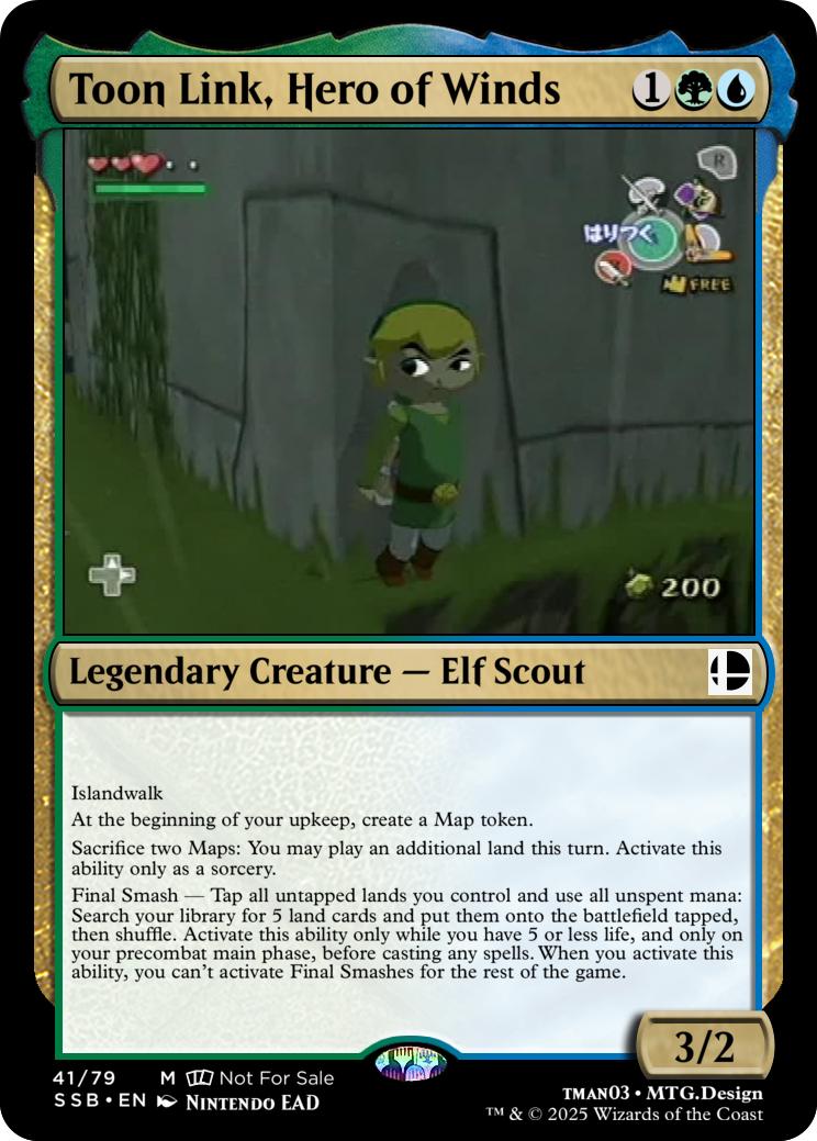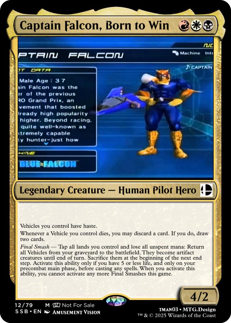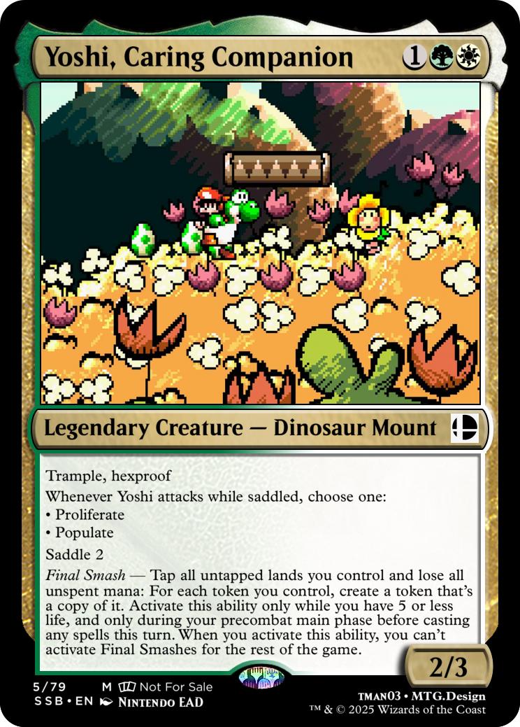 Final Smash— Tap all untapped lands you control and lose all unspent mana: Mario deals 10 damage to each opponent and you gain 10 life. Activate this ability only if you have 5 or less life, and only on your precombat main phase before casting any spells this turn. When you activate this ability, you can’t activate Final Smashes for the rest of the game.